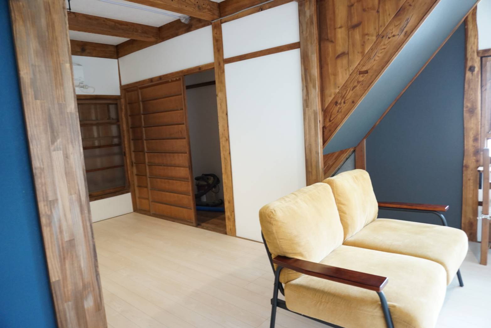 日本家屋古来の土壁、太い梁や柱、畳間や縁側。